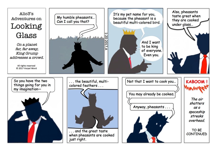 2017-1 King Grump King Grump, on the Planet Looking Glass, speaks to the little people (“pheasants”).